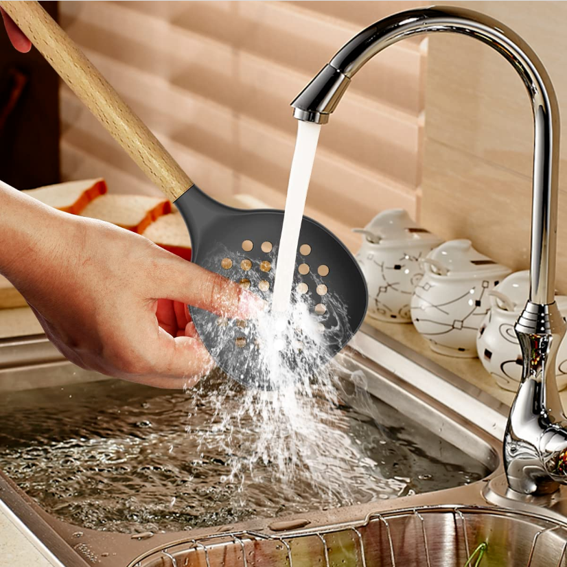 Q : What should I pay attention to when using wooden handle silicone cooking utensils?