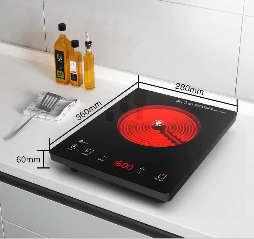 • 【Functions&Features】Cooktop has 8 power levels,you can adjust the fire power according to your needs.Intelligent 24-hour range timing,you don't have to keep an eye on the stove.Child lock protection function, long press to open the protection mode.Overload protection,when the circuit fails, Electric Stove will automatically power off.