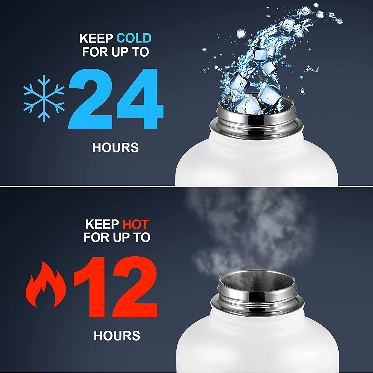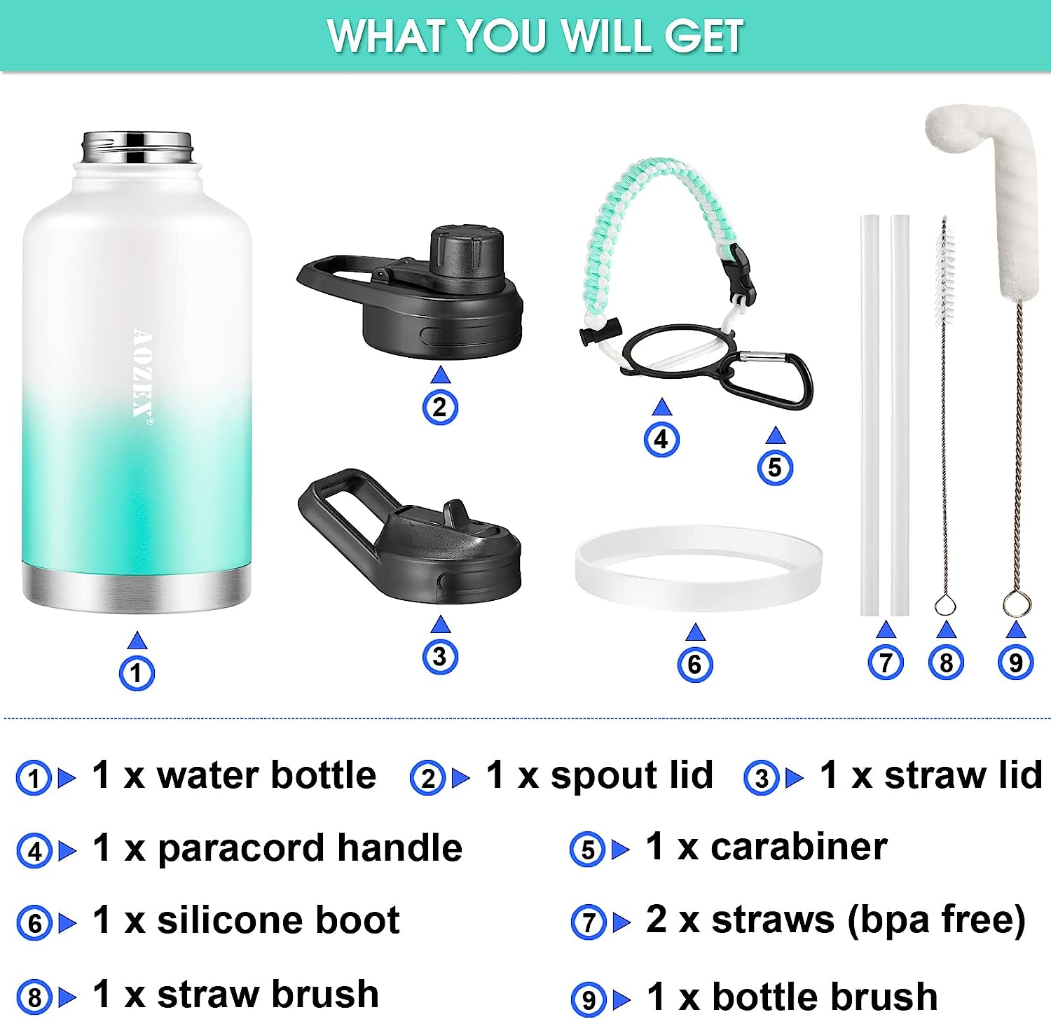 64 OZ Insulated Water Bottle with Straw, Stainless Steel Half Gallon Large Water