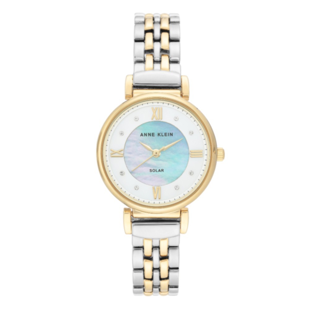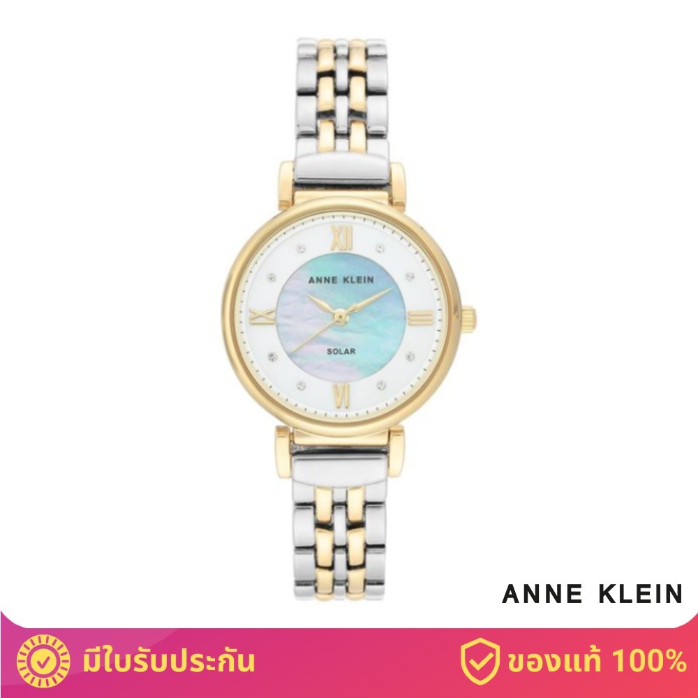 Anne Klein AK/3631MPTT Solar Powered Swarovski Crystal นาฬิกาข้อมือผู้หญิงพลังงานแสงอาทิตย์ สีเงิน