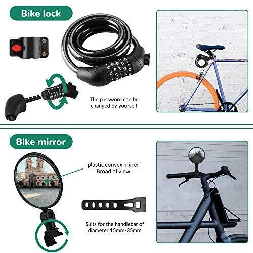 8 Pack Bicycle Accessories, Bike Light Set USB Rechargeable, 1 Bike Water Bottle Holder, Bike Bag and 1 Bike Aluminum Bicycle Bell,P