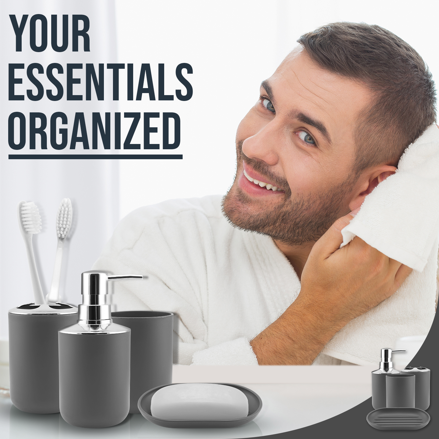 Shower Curtain, Shower Curtain Liner, Bin, Shower Curtain Hooks, Soap Dish, Soap Dispenser, Toilet Brush & Holder Set, Toothbrush Holder, Tumbler