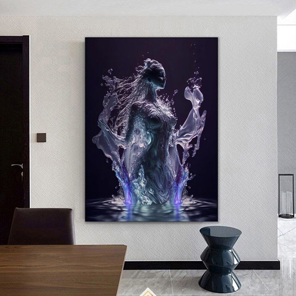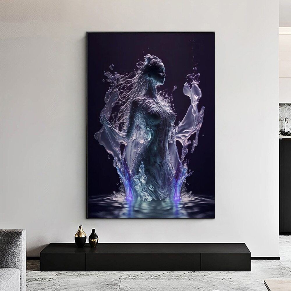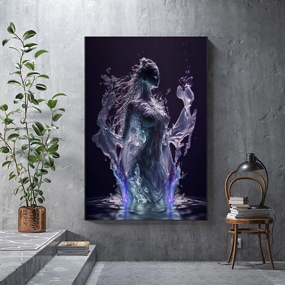 Abstract Water Goddess Portrait Canvas Painting Wall Art Home Decor Poster Print