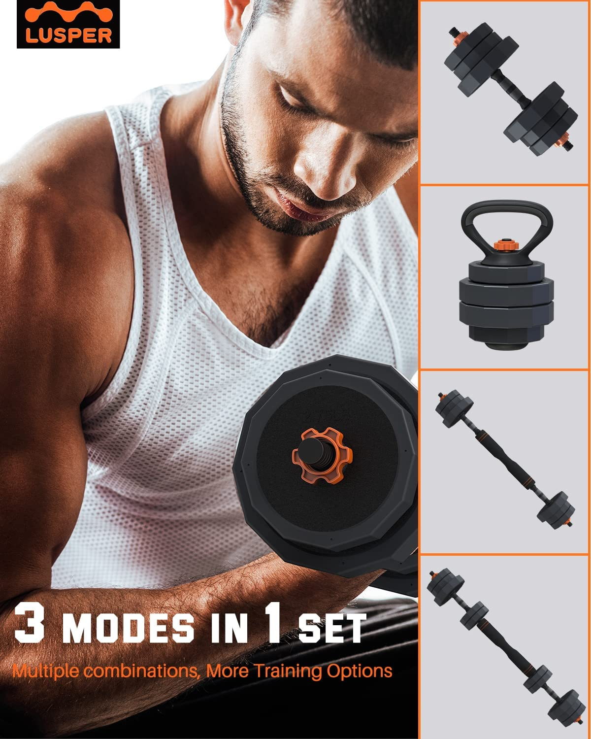 3 Functions (2 dumbbells, barbell, kettlebell)