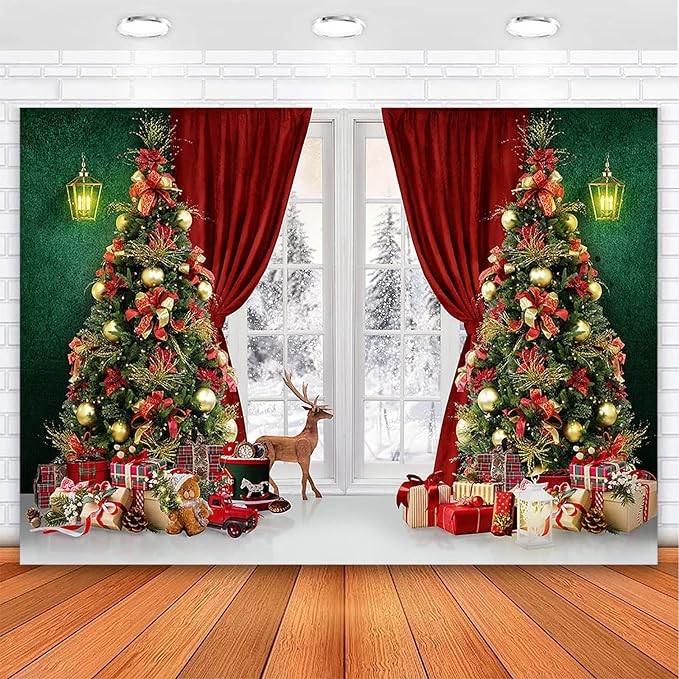 Avezano Christmas Photography Background Christmas Window Snow Landscape Christmas Tree Luxury Christmas Background Winter Holiday Family Newborn Baby Portrait Background Photography Studio Props (7x5