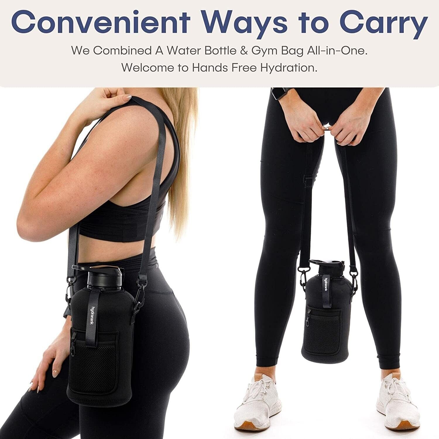 Half Gallon Water Bottle with Straw and Chug Lid-2.2L Gym Water Jug, Abyss Black