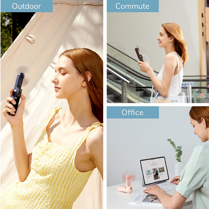 • 【A Palm-sized Backup Charger】Featured with unique and pocket size design, F8 portable fan is easy to jam into a bag to tote around. And it is a perfect option as an external backup power bank to get your phone charged if necessary.