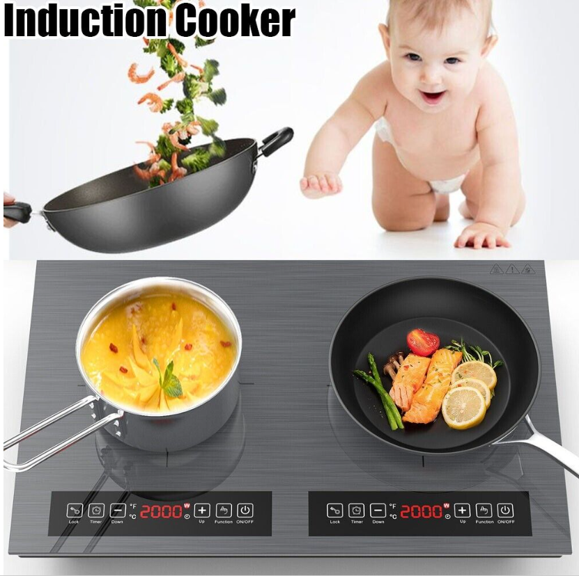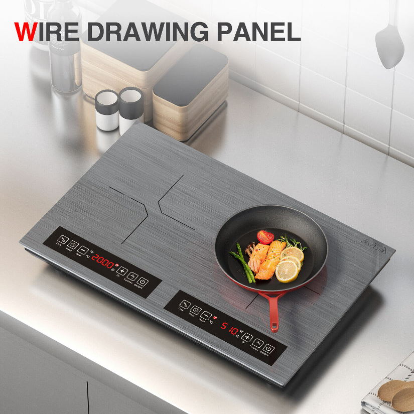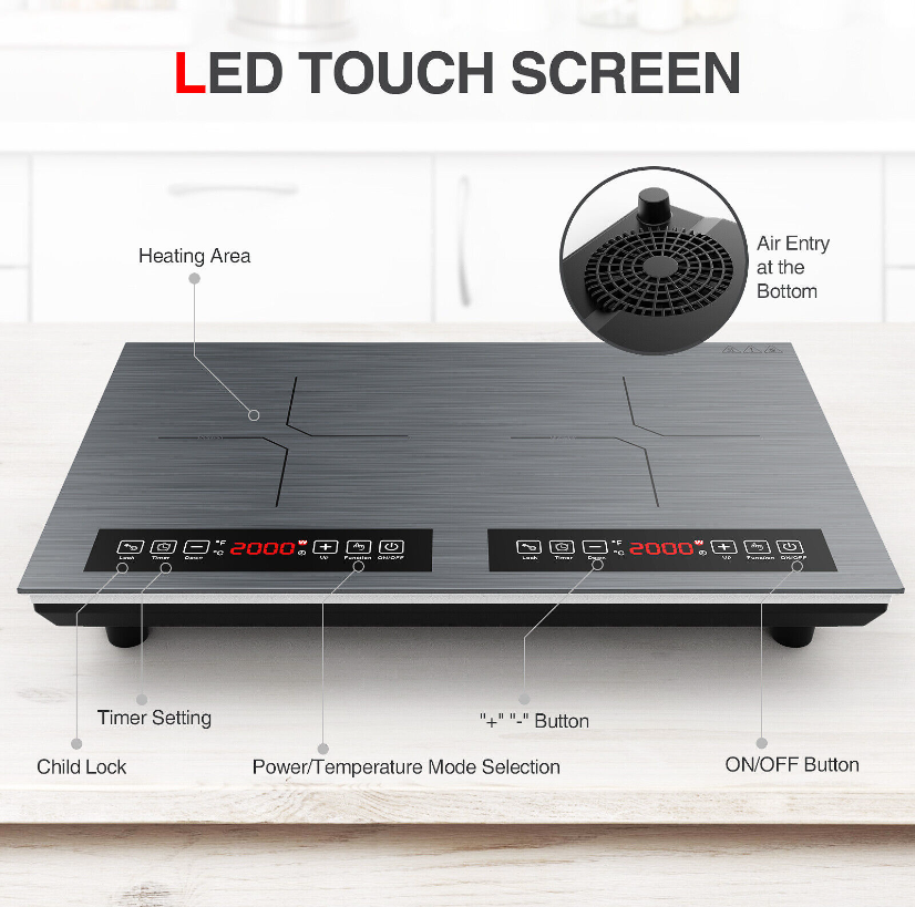 • ??DUAL HEATING ZONES?The double induction cooktop features two independent heating areas and independent LED display. Each burner is 2000W which can cook 2 dishes quickly at the same time. The electric cooktop uses 110-120 Volts of electricity?standard in all North American homes.