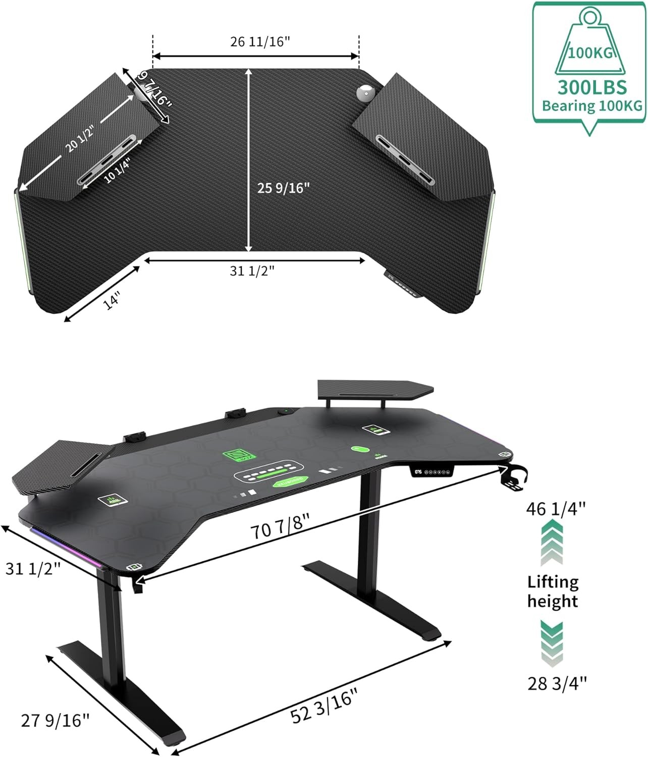• ⑩ Designed for Gamers, Creators & Professionals: Whether it's a gaming room, home office, or music studio, the 72'' ergonomic wing-shaped design provides ample space and flexibility for multitasking and creativity. It’s the perfect desk for any high-performance setup