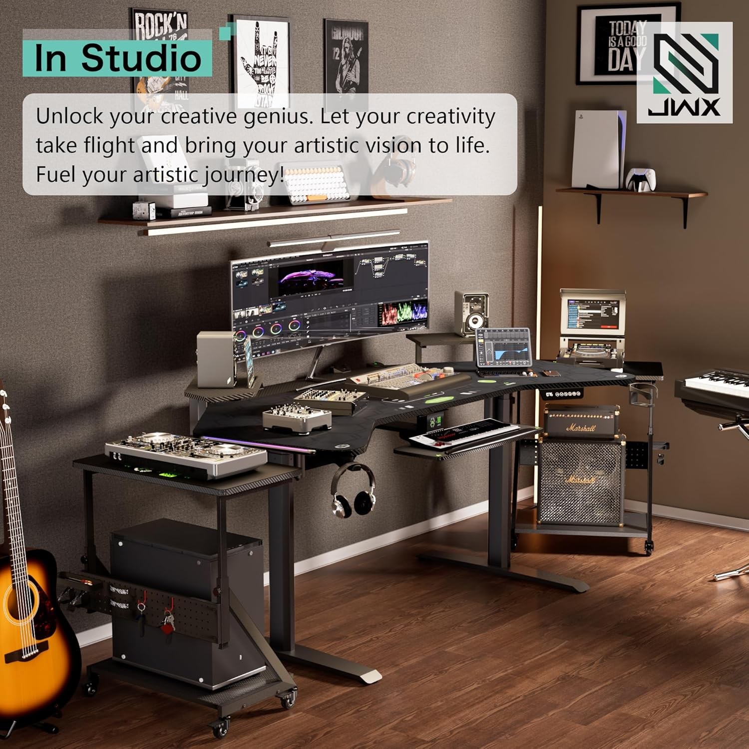 • ⑩ Designed for Gamers, Creators & Professionals: Whether it's a gaming room, home office, or music studio, the 72'' ergonomic wing-shaped design provides ample space and flexibility for multitasking and creativity. If you use your computer more than 1 hour a day, you will find that this is a brand new desk designed for you, because the wing-shaped design provides flexible space for the abdomen and arms, you can easily get what you want; more comfortable is 72'' area can almost accommodate your music, studio or live The 0.6 inches smooth carbon fiber textured top brings not only water and heat resistance, but also a more advanced touch enjoyment.