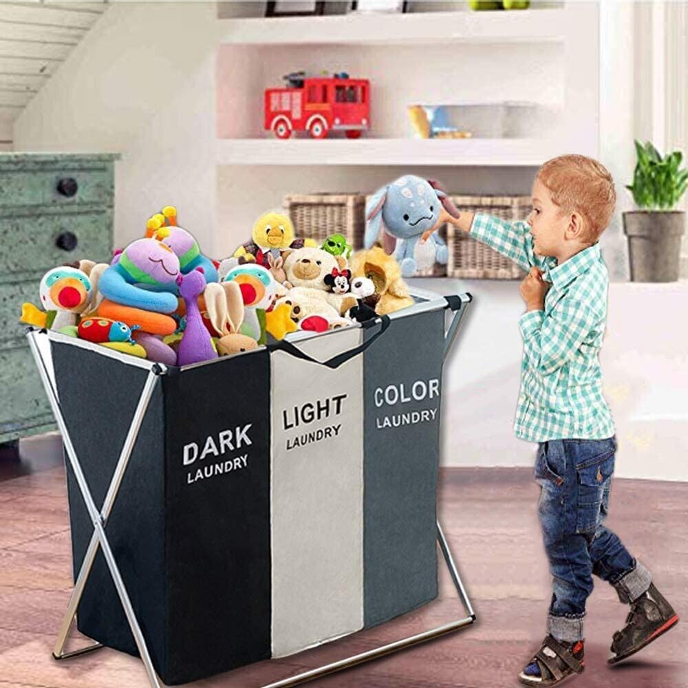 Laundry Basket Organizer Foldable Three Grid Hamper Dirty Clothes Bing Storage