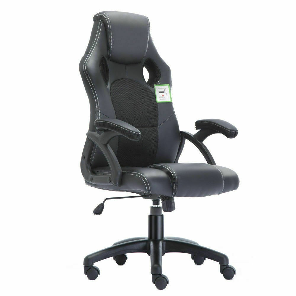 RACING GAMING OFFICE CHAIR EXECUTIVE LUMBAR SUPPORT SWIVEL PU LEATHER COMPUTER