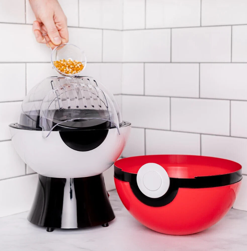All Pokémon fans will love our Pokéball Popcorn Maker. Our counter-sized version is all about good taste! The top of the Poké Ball turns the popcorn maker top into a bowl as you make fresh popcorn.