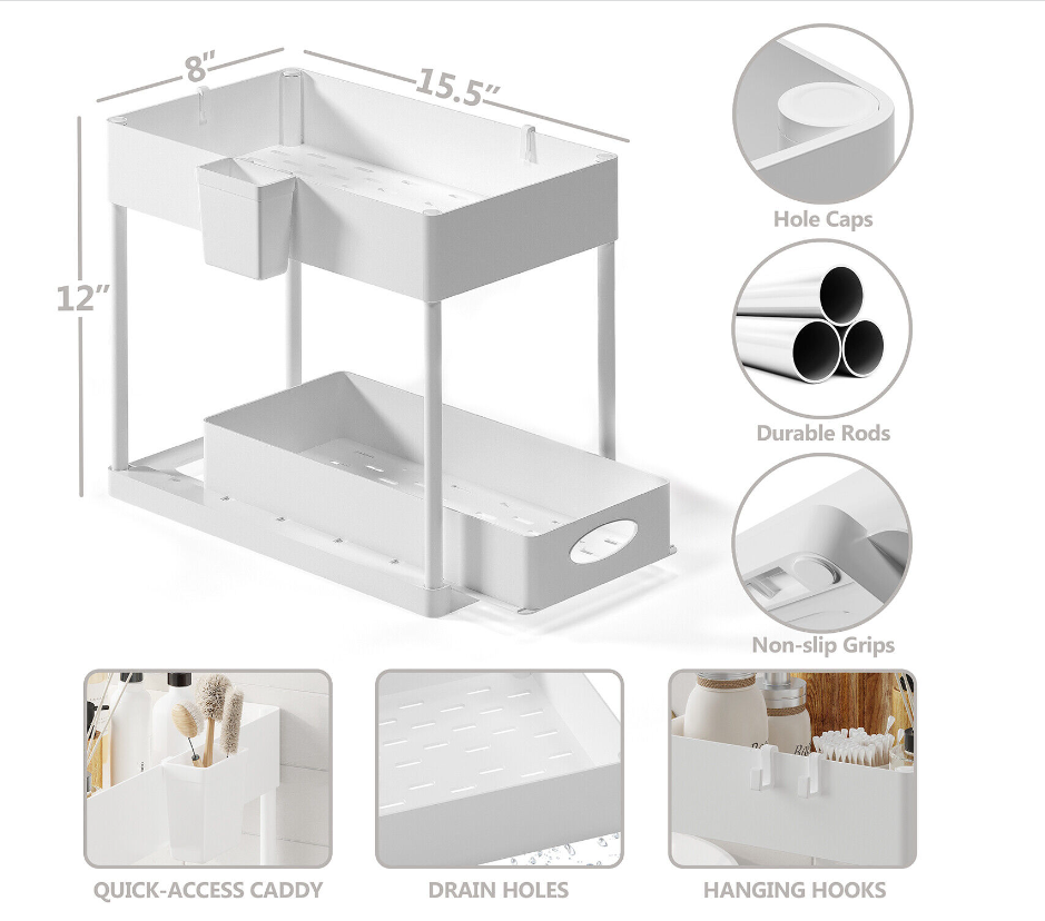 Easy to Clean, Multipurpose, Non-Stick, Waterproof, Easy Assembly, Pull-Out Drawers, Quick-access side caddy, 2 hanging hooks