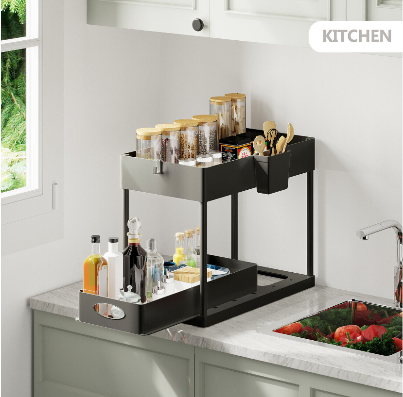 Under Sink Organizer with 2 Tier Sliding Drawers - Bathroom Cabinet Organizer