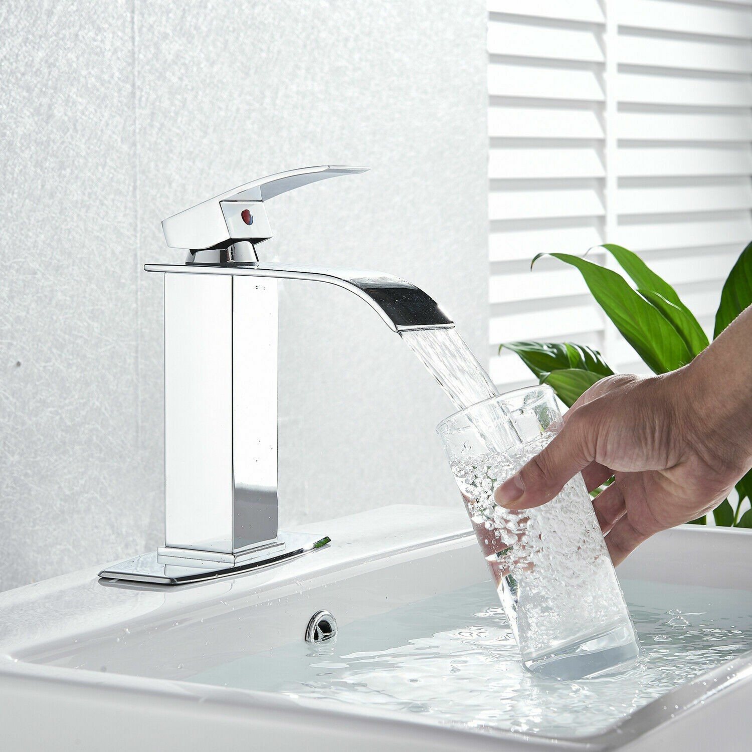 Waterfall Bathroom Sink Faucet Single Handle Hole Vanity Mixer Taps with Cover